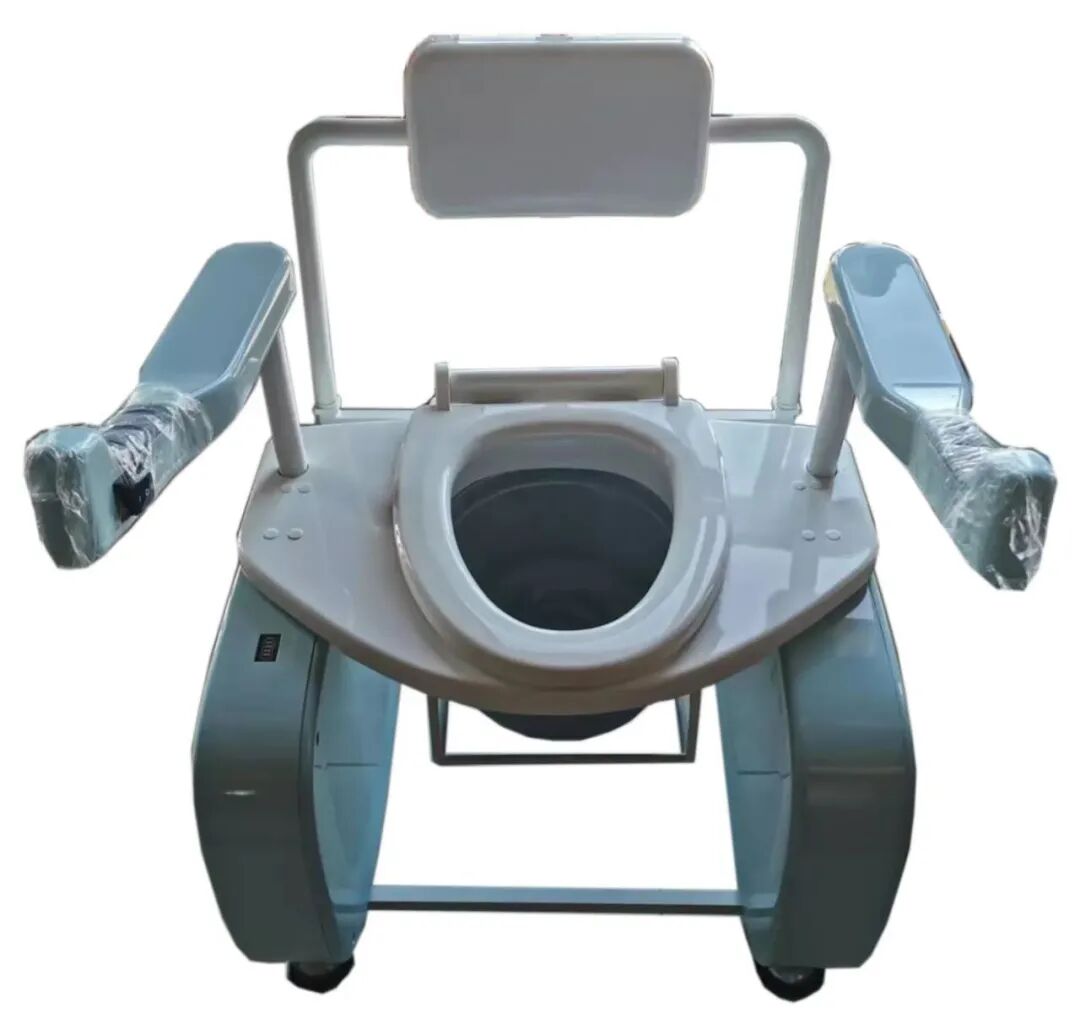老人到了一定年龄尤其是半失能老人,“方便”时下蹲及起身比较困难,特别是膝关节无力与疼痛以及“腿脚不利索”的老人“方便”时很不幸福。用上该器具可帮助解决如厕时的下蹲与起身困难,还可以作为训练器材帮助使用者在卫生间内训练并实现独立如厕。白天可将其放到厕所现有坐便器上面,老人“方便”前通过遥控器先让其抬高并与屁股“密切接触”之后再下蹲,“方便”之后中再让其抬高帮助老人起身。晚上可将该器具下方安装便盆并推至老人卧室,成为一个既能帮助下蹲及起身又可以移动的坐便器。该器具操作简单,一键升降,可大大提升“腿脚不利索”老人“方便”时的幸福感。