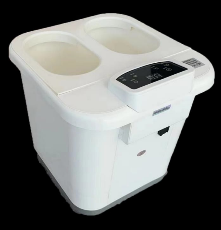老人喜欢热水泡脚,但传统泡脚方式水易凉、泡得时间短且不能按摩,市场上能加热带按摩的器具多数热度不够,且只能泡脚而不能泡小腿。超声波足浴理疗仪一体机是最新的全自动SPA温泉机,主要特点:打开机器瞬间产生百万个气泡,气泡相互撞击产生超音波让人体发热且“先热骨骼、后热皮肤”;气泡拍打按摩双腿、双脚,舒压放松;自动产生负氧离子浓度达2万多,泡脚时享受类似巴马的好空气;自动产生远红外线并将水磁化成小分子水,泡浴时给双腿双脚补水,让皮肤变得光滑;能产生臭氧自动杀菌,简单清理后可供多人循环使用。